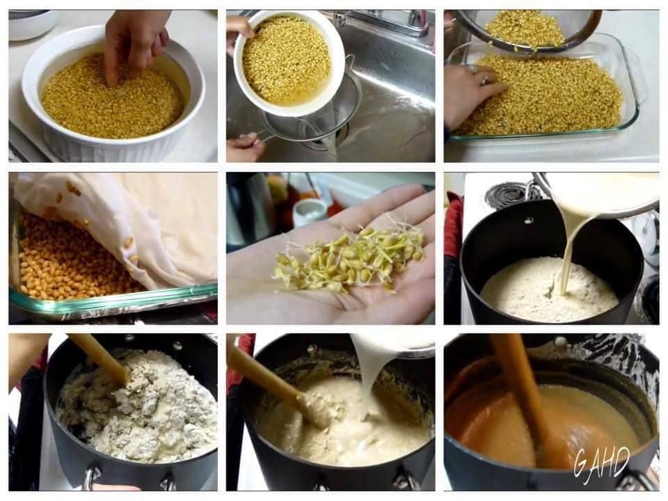 گندمهای جوانهزده را ۲ بار از ماشین گوشت کشیده بعد ۶ تا ۸ گیلاس آب شیرگرم روی آنها بریزید و یا با مقداری آب در میکسر مکس کنید بعد آن را در چلوصافی بریزید و باد دست مشت اش کنید تا شیره گندم با آب کاملاازآن خارج شود. تفالههای باقیمانده گندم در چلو صاف را با دوگیلاس آب مخلوط نموده و دو باره آن را از چلوصاف بکشید تا شیره باقیمانده هم از گندم ها خارج شود.