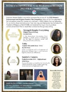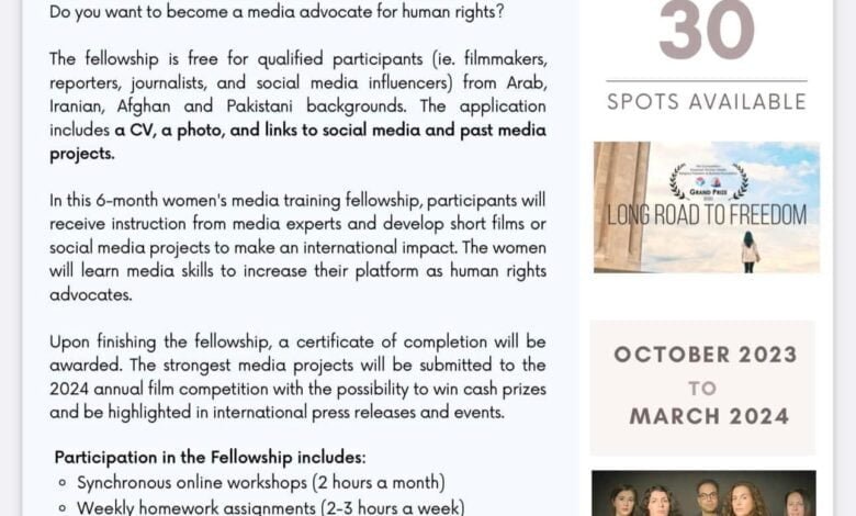 نهاد آمریکایی تقویت زنان در آمریکا یک دورهء آموزشی رقابتی برای زنان ازجمله زنان روزنامه نگار، فیلم ساز و فعال رسانه های اجتماعی برگزار می کند. شرکت کننده گان می توانند زنان کشورهای مختلف از جمله افغانستان باشند وپس از انتخاب در دوره های آموزشی دراین زمینه ها تحت پوشش قرار خواهند گرفت.برعلاوه تامین هزینه های پروژه ها برای شرکت کننده گان واجد شرایط ، زمینه رقابت آثارشان درجشنواره نیز فراهم خواهد شد. پس از پایان این دوره تحصیلی آموزشی شرکت کننده گان گواهی نامه دریافت خواهند کرد. این بورسیه آموزشی شش ماهه برای روزنامه نگاران ،فیلم های کوتاه وفعالان رسانه ای تاثیر گذار اختصاص داده شده است.