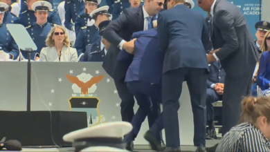 رییس جمهوربایدن در مراسم آغاز به کار نیروی هوایی به زمین خورد