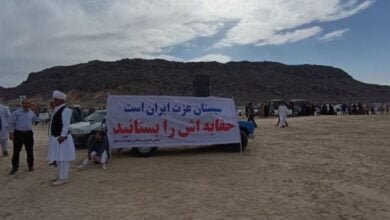 مردم سیستان ایران با راه پیمایی برای تامین حق آبه ء ایران از افغانستان اعتراض کردند آنان با تشکیل زنجیره…