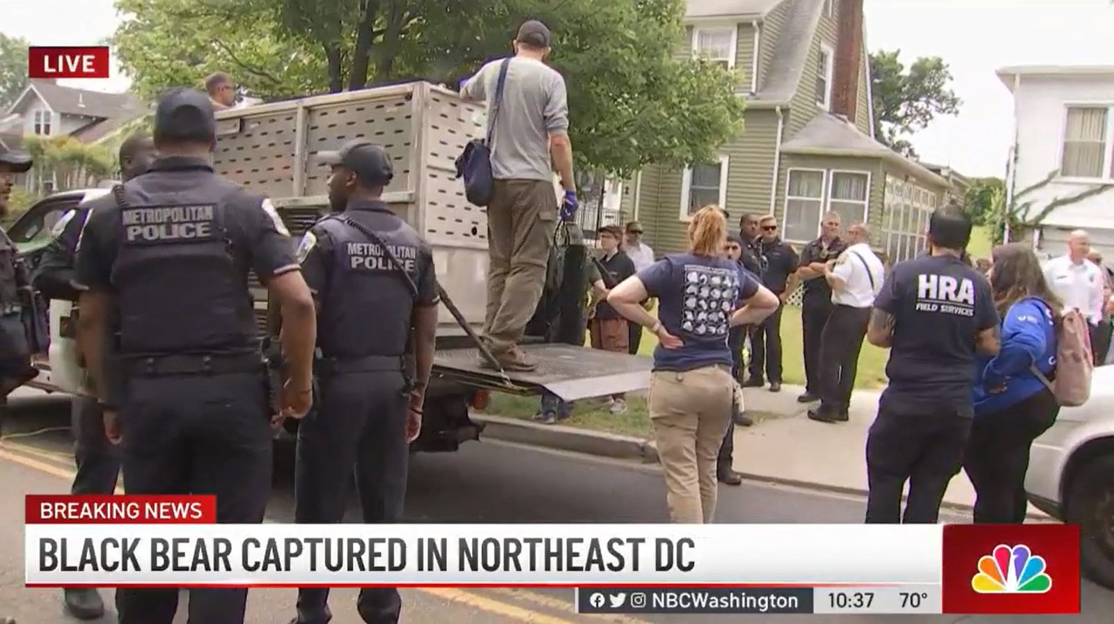 خرس سیاه در دی سی پس از بالا رفتن از درختان و در حال دویدن در خانه ها دستگیر شد.یک خرس سیاه بزرگ که از میان چمنها پرید، از درختها بالا رفت و از دست مسوولین کنترول حیوانات در شمال شرقی واشنگتن دی سی فرار کرد ، روز جمعه، قبل از دستگیری و انتقال به
